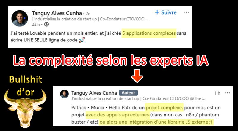Quand le gars te dit « j’ai fait un projet complexe avec l’IA » et que tu vois la complexité : c’est direct un bullshit d’or !